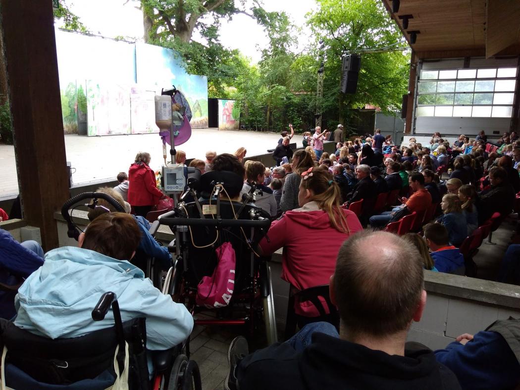 Es gibt vor Ort Behindertenparkplätze und einen Behinderten WC. An der linken Seite des Zuschauerraums gibt es eine extra überdachten Rollstuhlfahrertribühne.