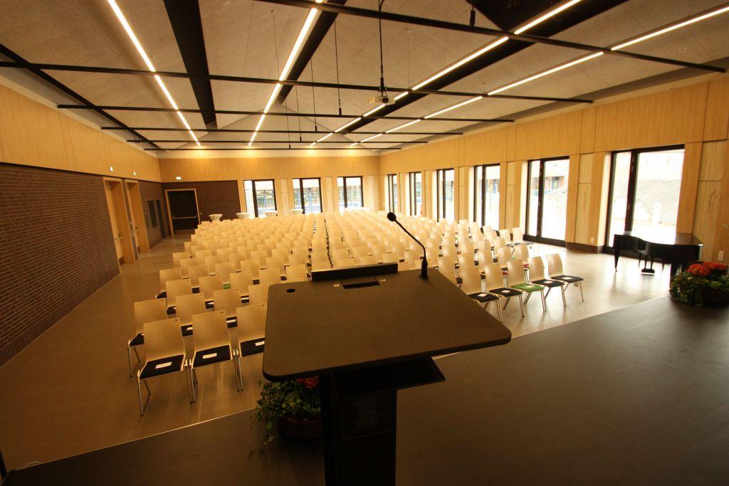 "Die Bürgerhalle im Zentrum von Wettringen bietet Räume für unterschiedlichste Veranstaltungen mit bis zu 320 Personen (bestuhlt). Die Räume 1 und 2, das Foyer und der Bürgersaal können einzeln angemietet werden und bieten ideale Voraussetzungen für Messen/Ausstellungen, Theater/Aufführungen, Tagungen, Events/Feiern und Lesungen.