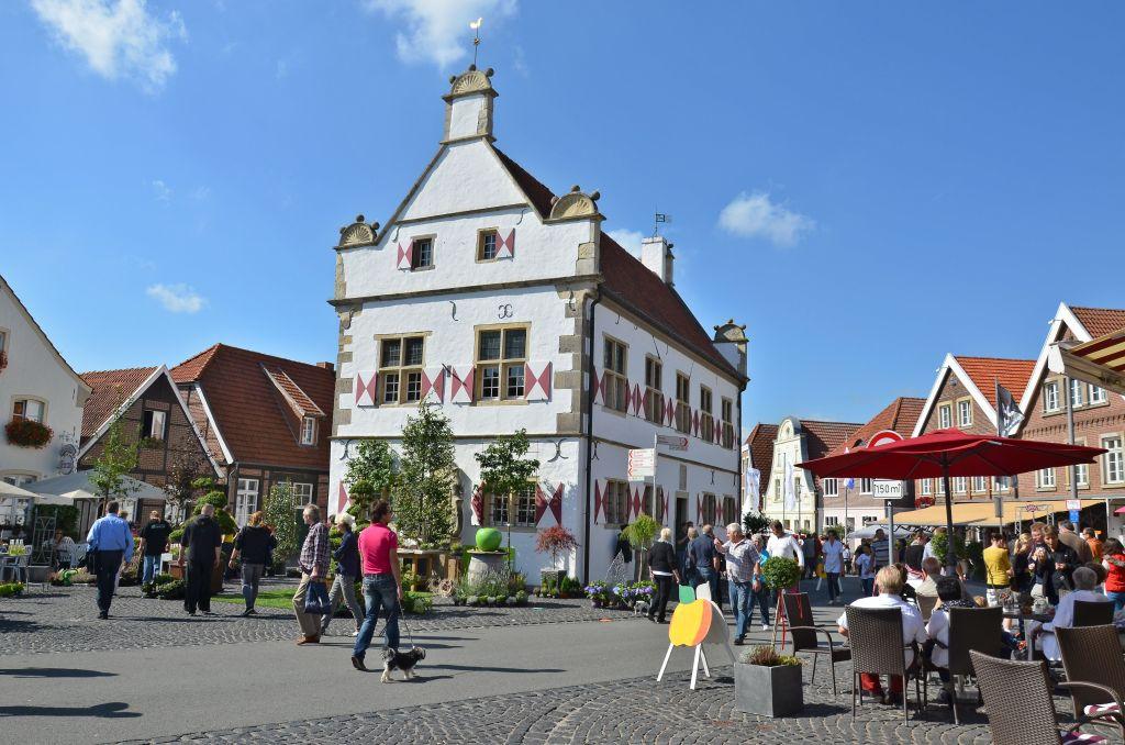 Das Alte Rathaus wurde im Jahr 1583 gebaut und gilt zusammen mit dem neu gestalteten Rathausplatz als das Schmuckstück von Schöppingen.