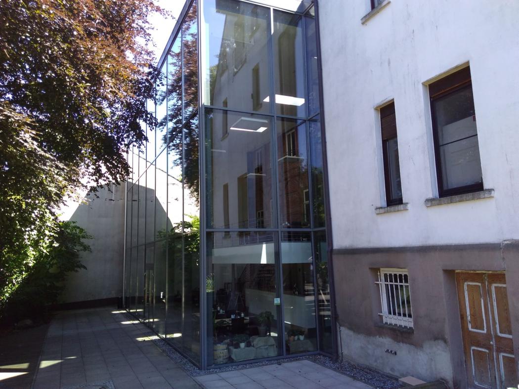 Das Museum kann man über den Nebeneingang barrierefrei über einen Aufzug erreicht werden. Dieser befindet sich hinter dem Haus und ist über das Cafe möglich.