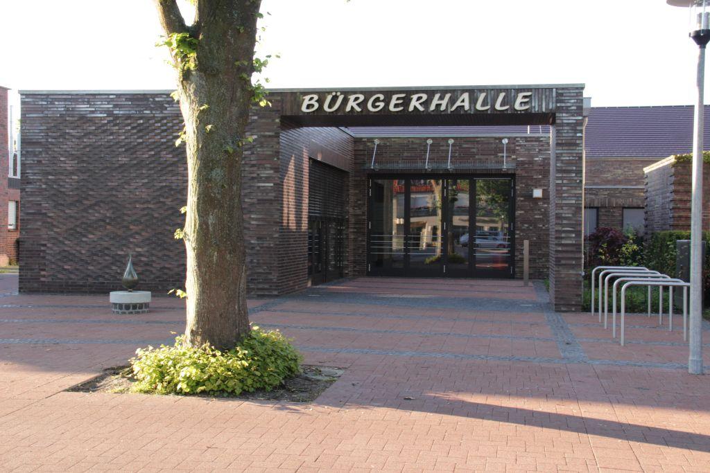 "Die Bürgerhalle im Zentrum von Wettringen bietet Räume für unterschiedlichste Veranstaltungen mit bis zu 320 Personen (bestuhlt). Die Räume 1 und 2, das Foyer und der Bürgersaal können einzeln angemietet werden und bieten ideale Voraussetzungen für Messen/Ausstellungen, Theater/Aufführungen, Tagungen, Events/Feiern und Lesungen.