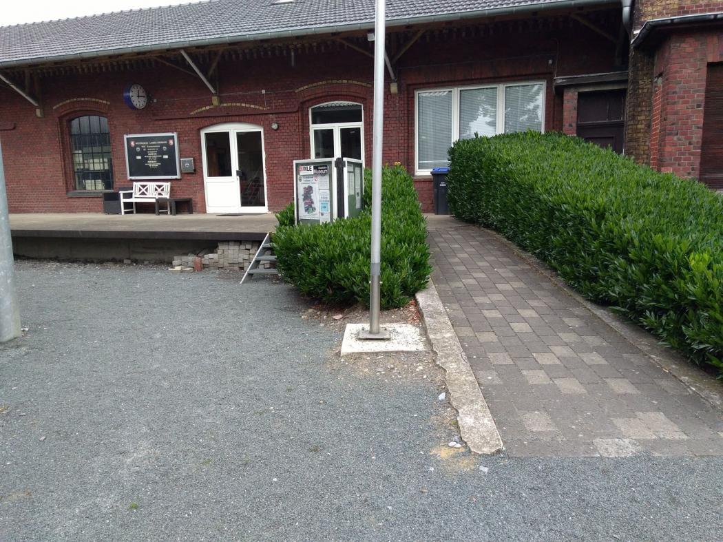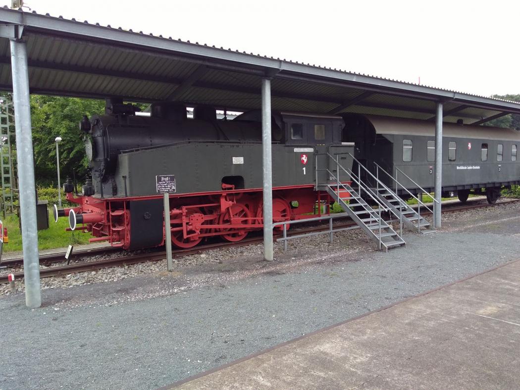 Es gibt einen großzügigen Schotterparkplatz direkt vor dem Museum. Über eine Rampe kommt man zur Museumshalle. Durch zwei Schiebetore und über eine Türschwelle (5cm) gelangt man ins Museum. In eine der Lokomotiven kommt man über eine Treppe.